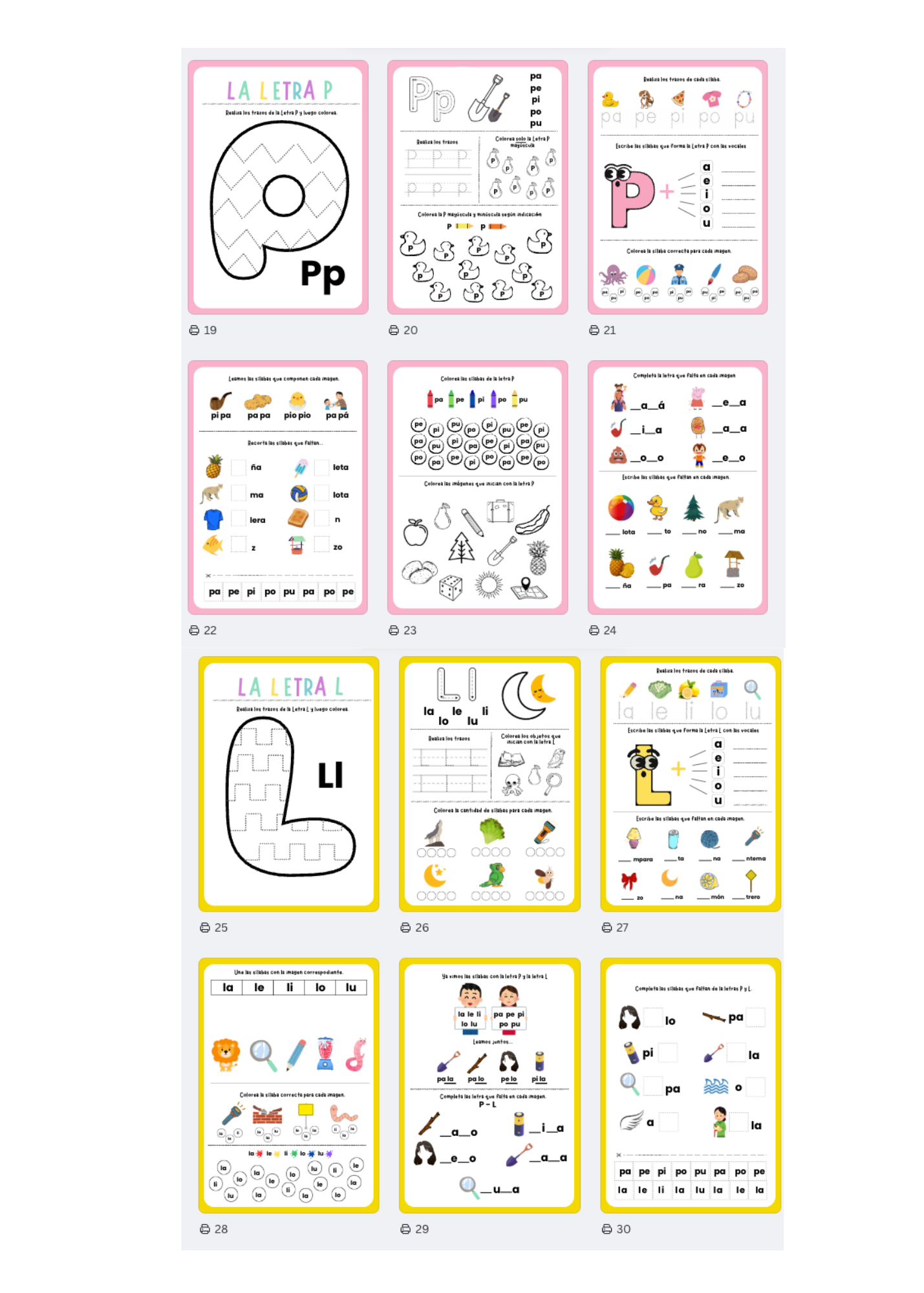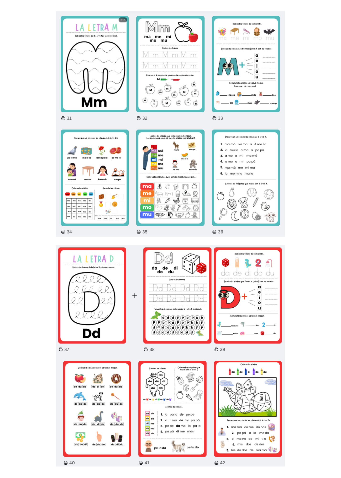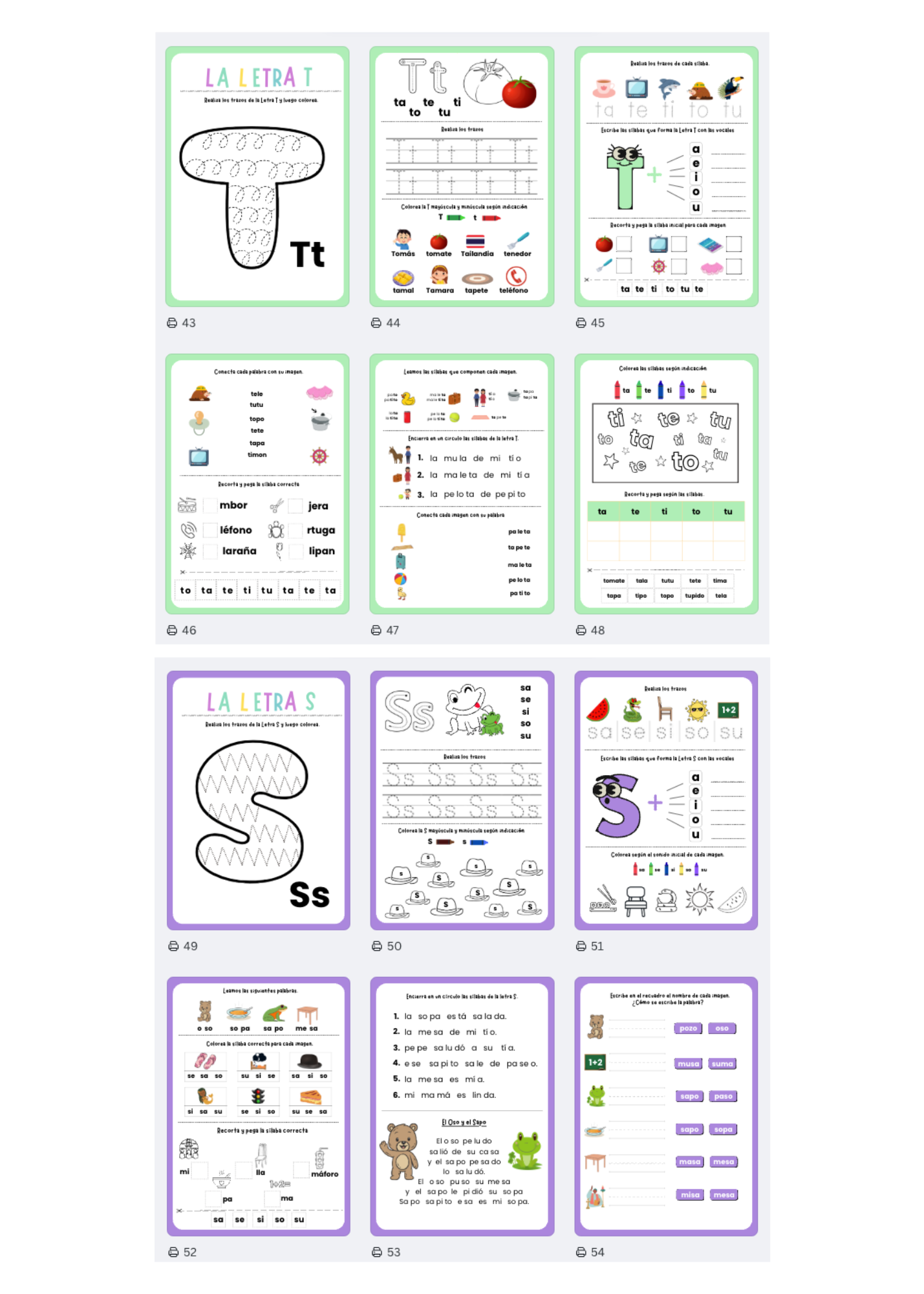 Asimismo, incorporamos las consonantes P, L, M, D, T y S, en ese orden para empezar con la lectoescritura en peques que tienen curiosidad con escribir y leer a temprana edad.
